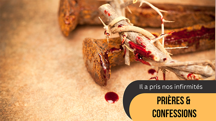 Je te remercie Jésus d’avoir pris mes maladies et d’avoir emporté mes infirmités. Sur la croix, Tu n’as pas seulement pardonné tous mes péchés, mais Tu as aussi guéri toutes mes maladies. Je décrète que je suis guéri par tes blessures. La maladie n’est pas mon lot, et mon corps ne sera affligé d’aucune maladie, au nom puissant de Jésus-Christ.